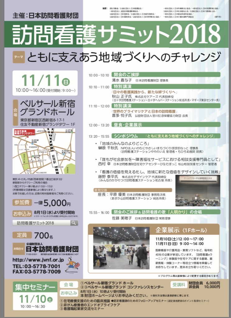 2018年11月11日に東京で行われた訪問看護サミット2018に行ってきました。